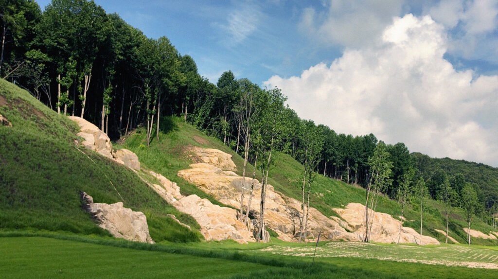 자연이 만든 명당(明堂) 에스파크 남한강 현계산과 황학산이 감싸는 길지(吉地). 명당(明堂)으로 전해지는 법천사지와 과거 금광의 흔적이 남은 자리. 시간이 축적된 이 땅 위에서 플레이는 또 하나의 빛을 더합니다. 자연을 거스르지 않고,지형의 흐름을 읽어 설계된 코스.매 홀마다 전략이 요구되고,플레이는 깊이를 더합니다. 미국 JMP의 브라이언 코스텔로가 루트플랜을 담당한 에스파크 남한강의 코스는 도전과 완성도의 균형을 담은 입체적인 코스입니다. 규모 정규 대중제 27홀 코스전장 10,737yd(9,818m) 홀 거리 평균 359.4m 플레이 폭 평균 80m 페어웨이 폭 평균 63m